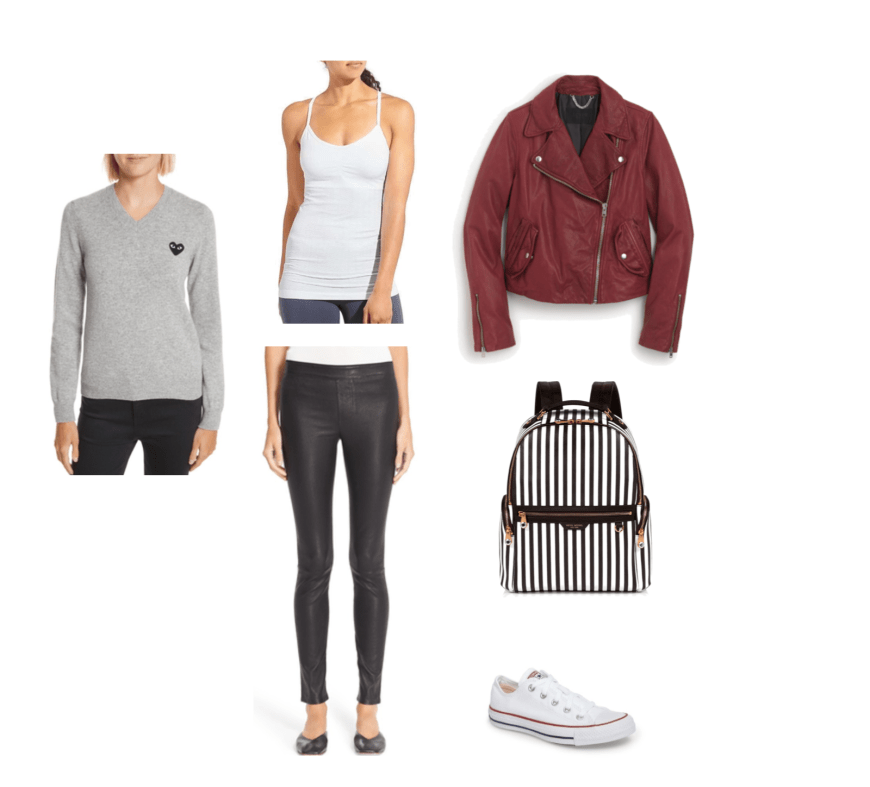 Who says athleasure has to be sweatpants and a sweatshirt? Bring in some leather to make your look style forward, but tone it down with classics like white converse sneakers. Perfect for weekends or running errands! Looking for another leather jacket to add to your wardrobe? Try burgundy, blue or green!